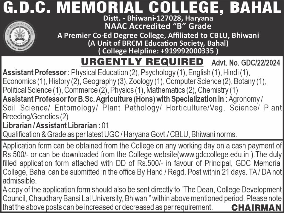 A student not only gets timely advice from faculty but also from peers, and a student in a traditional degree program gets to socialize and take advantage of campus life. At GDC Memorial College, we provide the platform to groom the overall personality of student as well as faculty. It is just like a home away from home with good infrastructure & other facilities like separate hostels for boys and girls, residence for faculty, mess, gym & swimming pool etc.